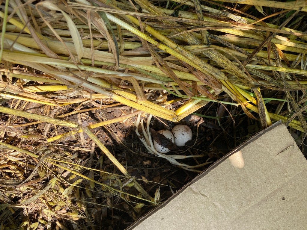 After we learned about the stinkhorn mushroom we walked over to the Coan farm and began weeding a few more rows and laying down hay.