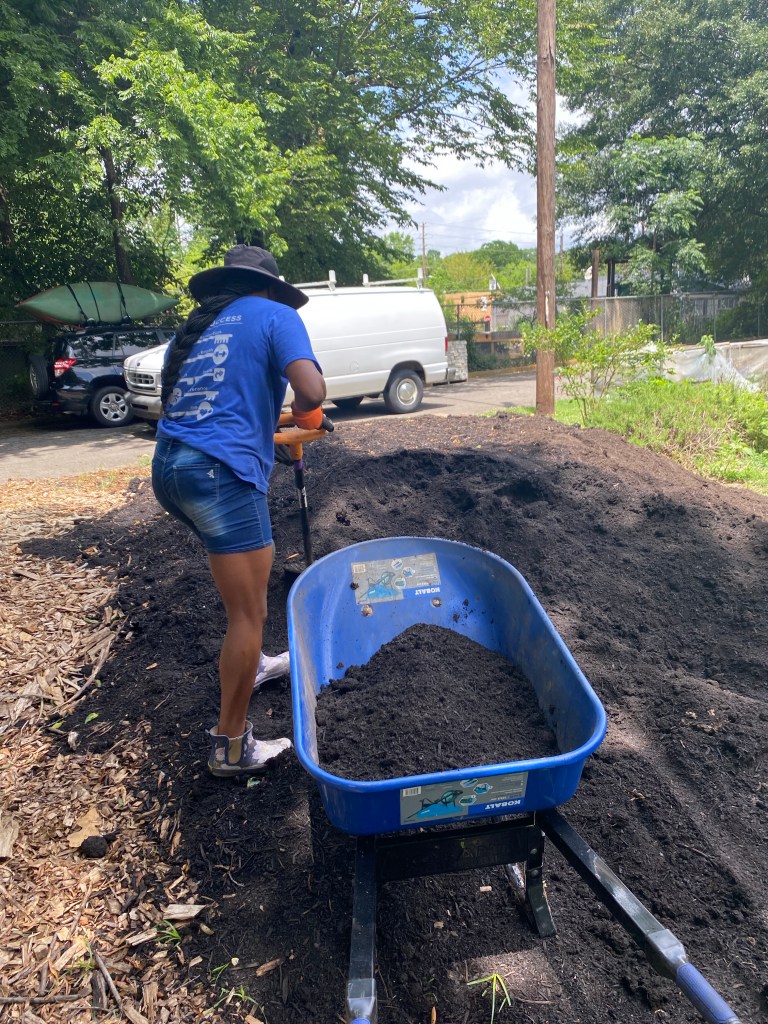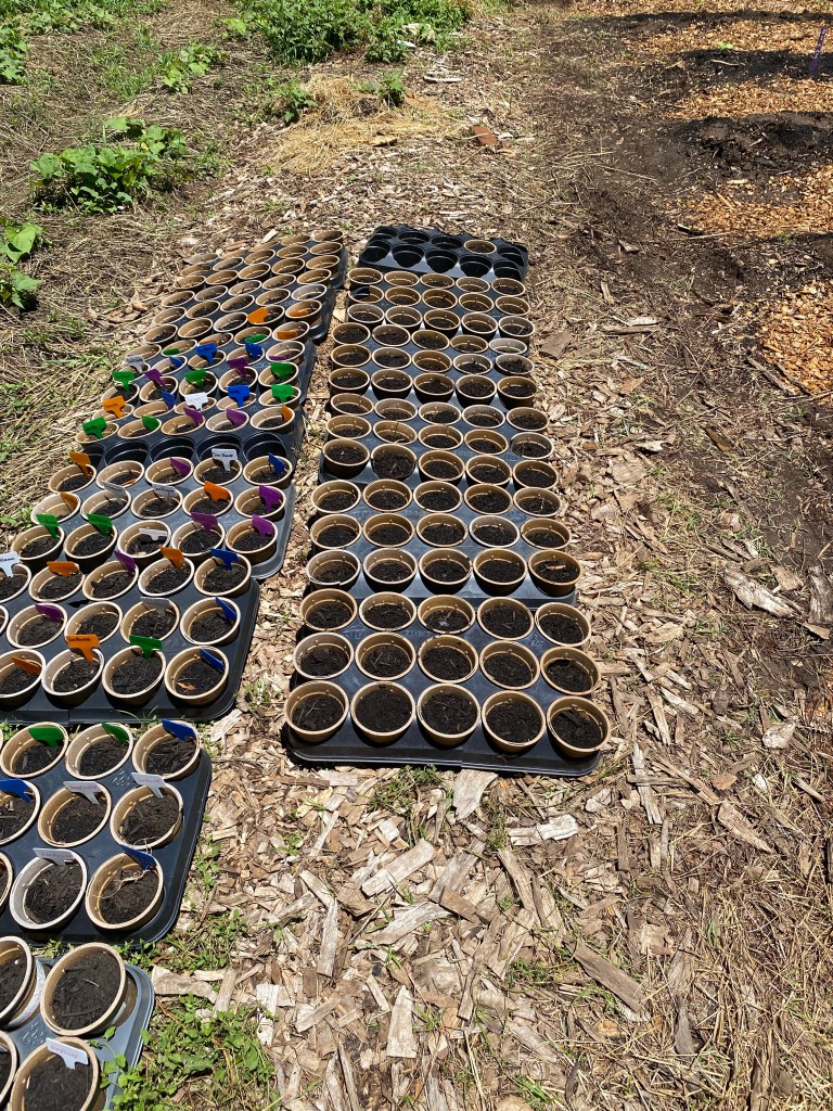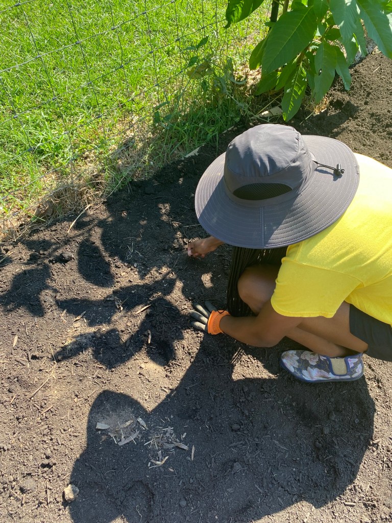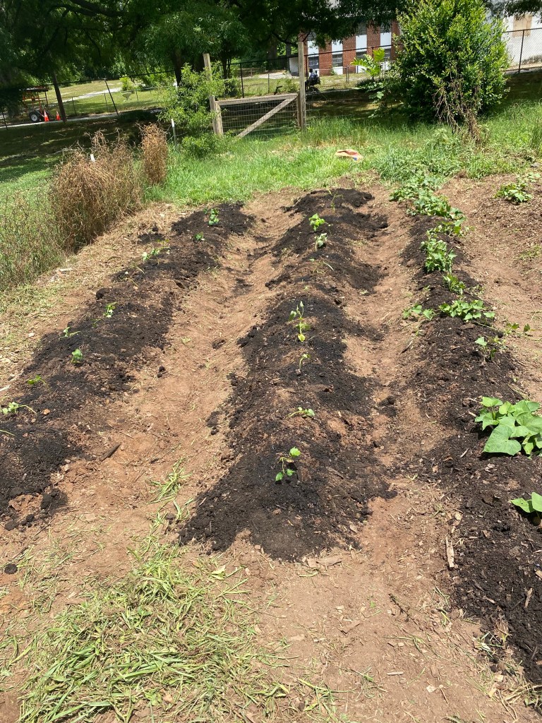My favorite part of today was probably inserting our sweet potatoes into our rows of compost so they can grow nice and strong.