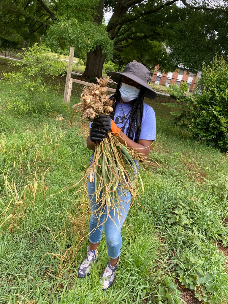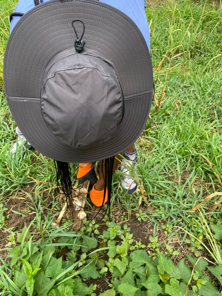 My favorite part of the day was learning how to harvest garlic . Harvesting garlic had to be my favorite part because i got to see my food coming out of the ground and just seeing the impact i made on the farm for the day.