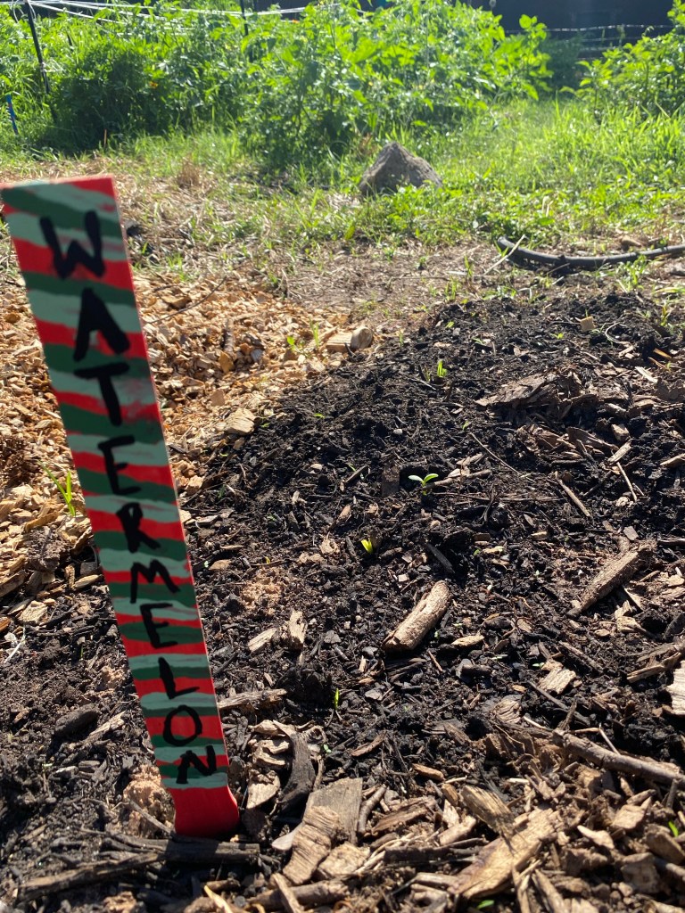 After I finished the rows we walked over to the Greenwood garden. Our instructor told us that our garden needed some color, so we began to make gardening labels with the fruit and vegetable name.
