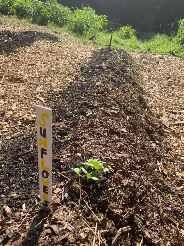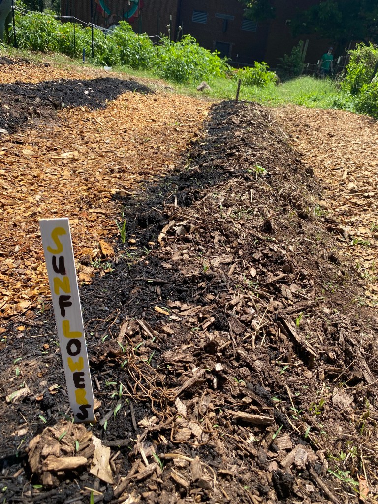 After i completed my row i began to plant beautiful sun flower seeds along the finch line.